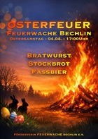 Der Förderverein Feuerwache Bechlin e.V. lädt ein zum Osterfeuer mit Bratwurst, Stockbrot und Fassbier